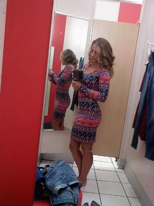 I went shopping (more like browsing) at Target and tried on this cute dress, but didn't buy it because I thought it might be too warm for San Diego "fall" weather...