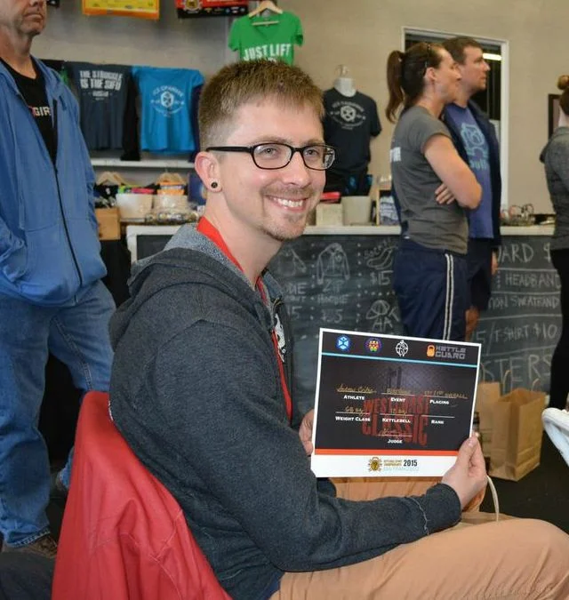 Andrew has been my most consistent Kettlebell Sport student since I started coaching at KOR Strength in October. The week leading up to the competition, he injured his lower back and had to step back from training - we weren't even sure he would be able to compete. Luckily, taking the week to rest and do recovery exercises worked, and he was able to set a new personal best of 116 jerks, as well as complete 179 snatches, in the 12kg Biathlon.